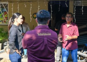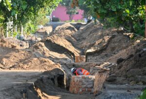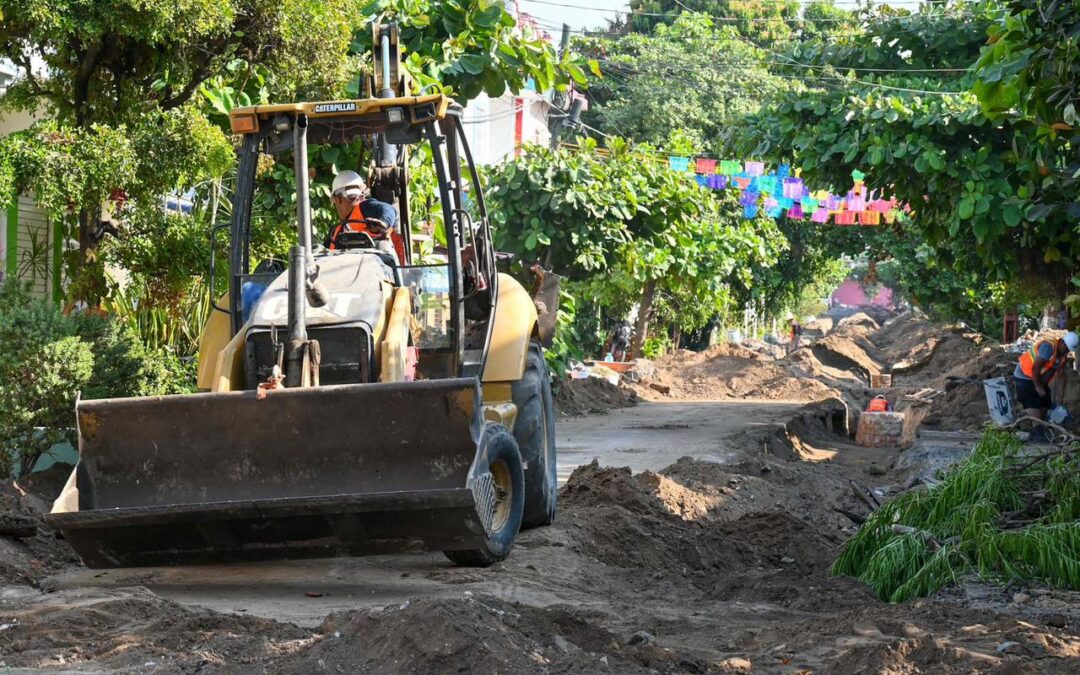 La presidenta municipal de Manzanillo, Rosa María Bayardo Cabrera, supervisó los trabajos de rehabilitación de las redes de agua potable y drenaje en la calle Jacarandas, en Valle de las Garzas.
