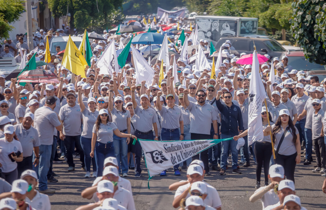 Este sábado, como parte de los festejos por el 45 aniversario del Sindicato Único de la Universidad de Colima (SUTUC), alrededor de 3 mil 500 trabajadores universitarios y varios jubilados participaron en una marcha que dio inició a las 11 del día. Partió desde el Instituto Universitario de Bellas Artes (IUBA) hasta el casino del SUTUC. Encabezaron la marcha el rector Christian Jorge Torres Ortiz Zermeño y Luis Enrique Zamorano Manríquez, secretario general del sindicato.