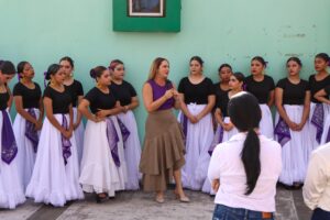 La presentación fue encabezada por la presidenta del Voluntariado de la Universidad de Colima, Blanca Liliana Díaz Vázquez, quien felicitó a las integrantes del ballet por su participación y destacó la importancia de incluir expresiones culturales dentro de las actividades conmemorativas del 8 de marzo.