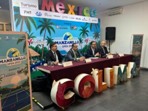 En instalaciones de la Secretaría de Turismo (Sectur) del Gobierno de México en la capital del país, se hizo la presentación oficial del Manzanillo Open 2025 de tenis, que se efectuará del 10 al 16 de noviembre en el hotel Las Hadas by Brisas; la presentación estuvo a cargo de Jorge Padilla Castillo, subsecretario de Turismo del Gobierno del Estado de Colima; Giovan Jiménez Ramírez, director de Facilitación y Calidad Regulatoria, representando a la titular de Sectur, Josefina Rodríguez Zamora; Carlos González López de Lara, presidente de la Federación Mexicana de Tenis; y Javier Gaytán Estrada, director del torneo y presidente de la Asociación Mexicana de Tenistas Profesionales.