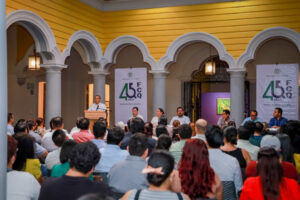 Torres Ortiz Zermeño recordó que en el proceso de admisión pasado, la UdeC recibió a aspirantes a educación superior de 24 estados del país y de 10 países diferentes “para iniciar un programa desde cero en la Universidad de Colima; eso es importante porque refleja el esfuerzo que facultades como la de ustedes hacen. Durante estos 45 años, ustedes han construido prestigio con su trabajo, y eso se nota”.