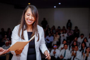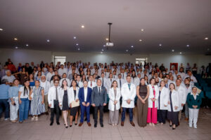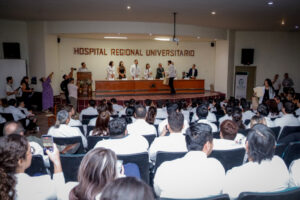 Viridiana Valencia habló de la exigente formación de las y los médicos residentes y dijo que “la medicina es una de las profesiones más nobles y exigentes; implica no solo conocimientos técnicos y científicos, sino la sensibilidad humana, ética, y un gran sentido de responsabilidad social. Ustedes han elegido dedicar su vida al cuidado de las demás personas, y con eso merecen nuestro más amplio reconocimiento”.