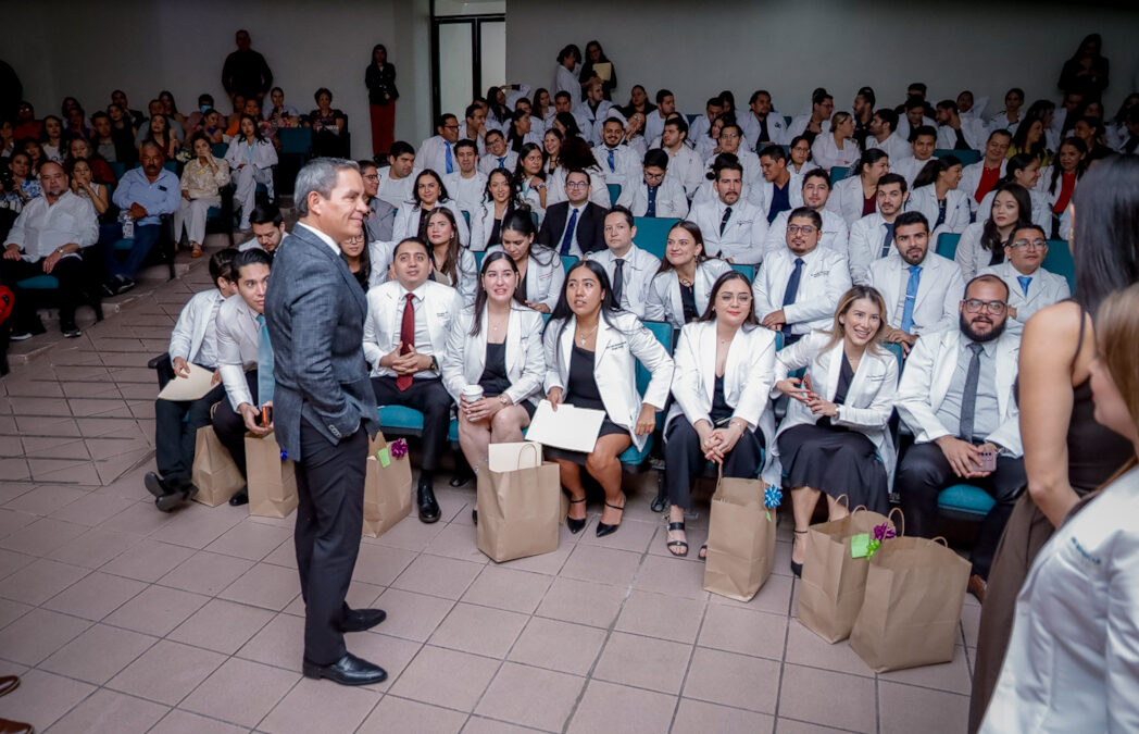 Finalmente, reconoció que la práctica médica de los 34 egresados se ejercerá con mayor autonomía, “pero también con mayor obligación moral hacia la sociedad, por lo que les pido que a partir de este momento, la práctica que ustedes realicen en cada una de sus áreas, lo hagan de manera humana; rescatemos esa parte de la humanidad de la medicina que mucha falta nos hace. Que su ejercicio profesional honre el esfuerzo realizado. Que el conocimiento adquirido se traduzca siempre en el servicio. Que la técnica se acompañe con la humanidad y que la ética guíe a cada decisión clínica”.