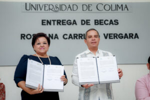 En su intervención, el rector agradeció a Rossana Carrillo Vergara y a su familia por su compromiso con la Universidad y por “invertir en la educación y el futuro de los jóvenes colimenses”. Subrayó que “una beca puede ser la diferencia entre continuar o detener los estudios; de ese tamaño es la importancia de estos apoyos en una universidad pública”.