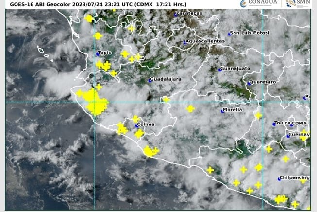 Además, el SMN contempla cielo nublado la mayor parte del día, con probabilidad de lluvias al amanecer, llegando a ser intensas en horas de la tarde en zonas de Nayarit, Jalisco y Colima.