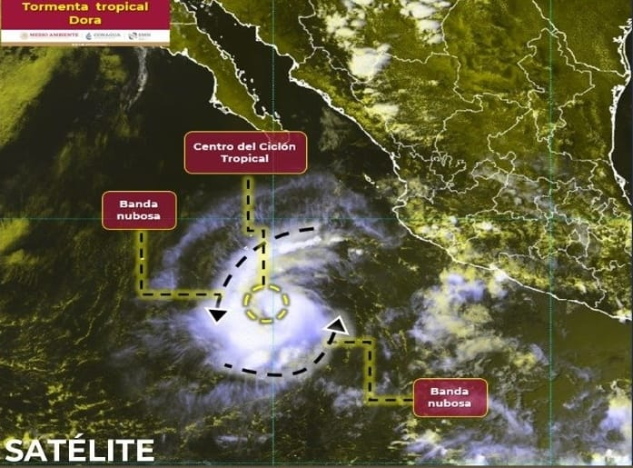 * La tormenta tropical Dora se desplaza hacia el oeste y se aleja de territorio mexicano, sin mayores efectos