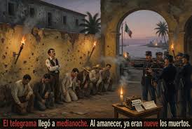La seguridad de Díaz llevaba semanas interceptando las cartas de los conspiradores, el presidente conocía los nombres, las rutas, los barcos. Sabía que tenía que cortar el problema de raíz y así dar el ejemplo. Cuando el Libertad se sublevó, en lugar de ordenar un proceso legal, mandó el fulminante telegrama. Mier y Terán, cumplió esa noche: Vicente Capmany, el doctor Ramón Albert, Antonio Ituarte, Francisco Cueto, Jaime Rodríguez, Luis Alva, Lorenzo Portilla y dos oficiales del ejército fueron ejecutados antes del amanecer. Cita de NVI Noticias.