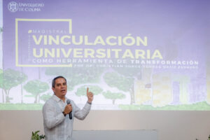 En su conferencia, Christian Torres Ortiz habló de la relevancia que tiene una coordinación de vinculación en las instituciones educativas, ya sean públicas o privadas, y cuáles fueron las estrategias y herramientas desarrolladas por la Universidad de Colima para lograr casos de éxito. También habló de los retos.