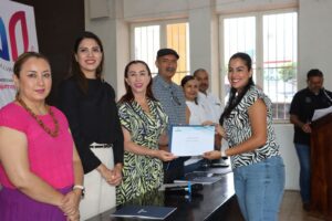 En la ceremonia de entrega de constancias de acreditación al curso “Clasificación de la información y versiones públicas”, la titular del Infocol entregó a la Presidenta Municipal la constancia de cumplimiento, por contener la página web del Ayuntamiento de Villa de Álvarez y la Plataforma Nacional de Transparencia el 100 por ciento de la información obligada a transparentar durante el primer y segundo trimestre de 2024.