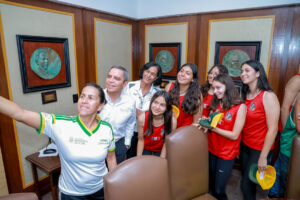 La tarde de este jueves, el rector de la Universidad de Colima, Christian Torres Ortiz Zermeño, recibió en la Sala de Juntas de Rectoría a bachilleres universitarios que integran la selección nacional de handball de playa Juvenil (sub-17), que competirá del 17 al 23 junio en el campeonato mundial en Hammamet, Túnez, África.